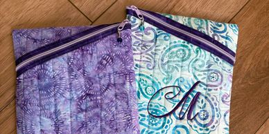 The Hemingway Pouch is a lined quilted pouch with a unique diagonal zipper. The pouch we will make in class can hold an iPad, Kindle or a book. Out of the materials required, you will make two of them!